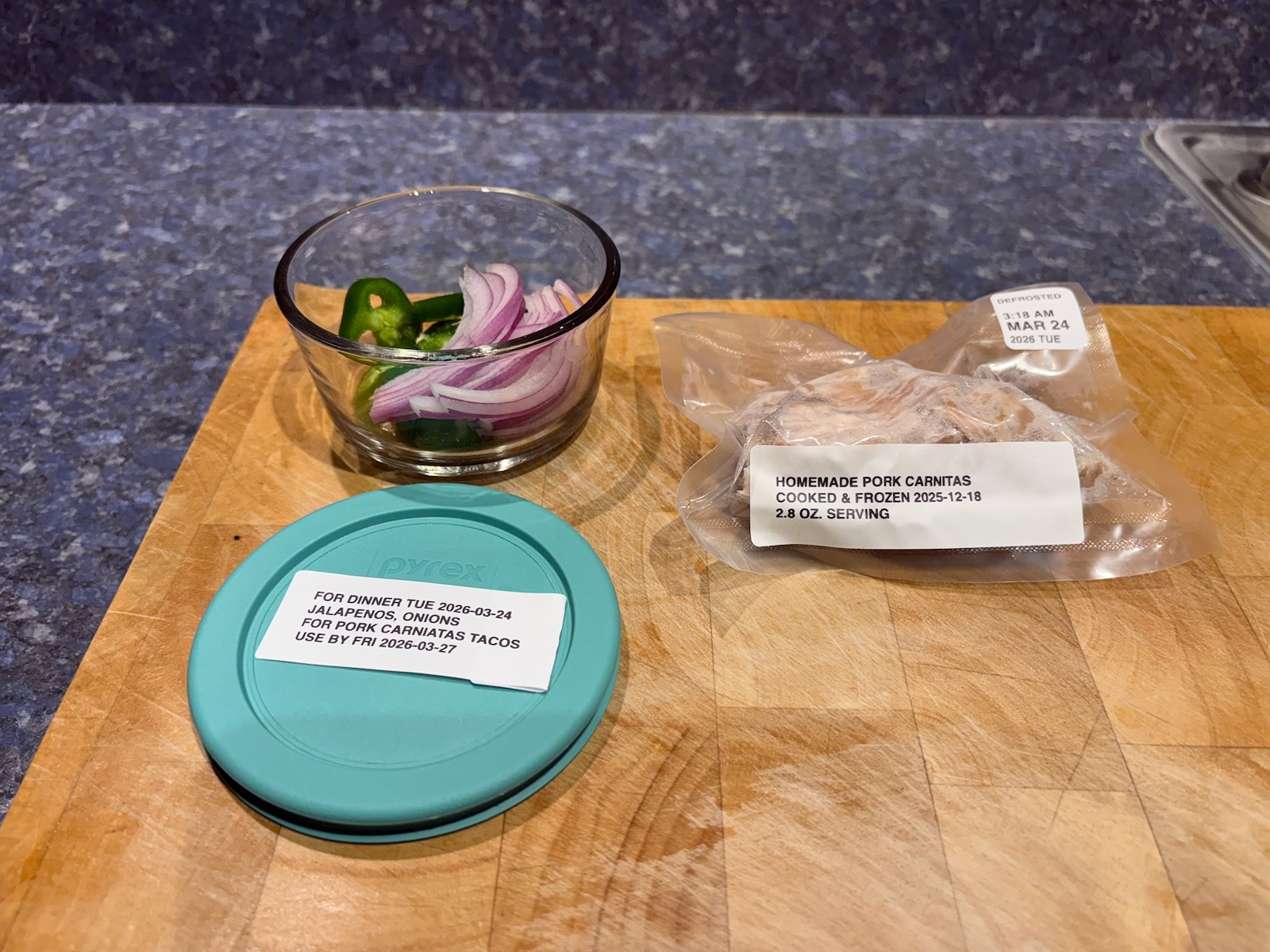 Prepped for lunch and dinner.