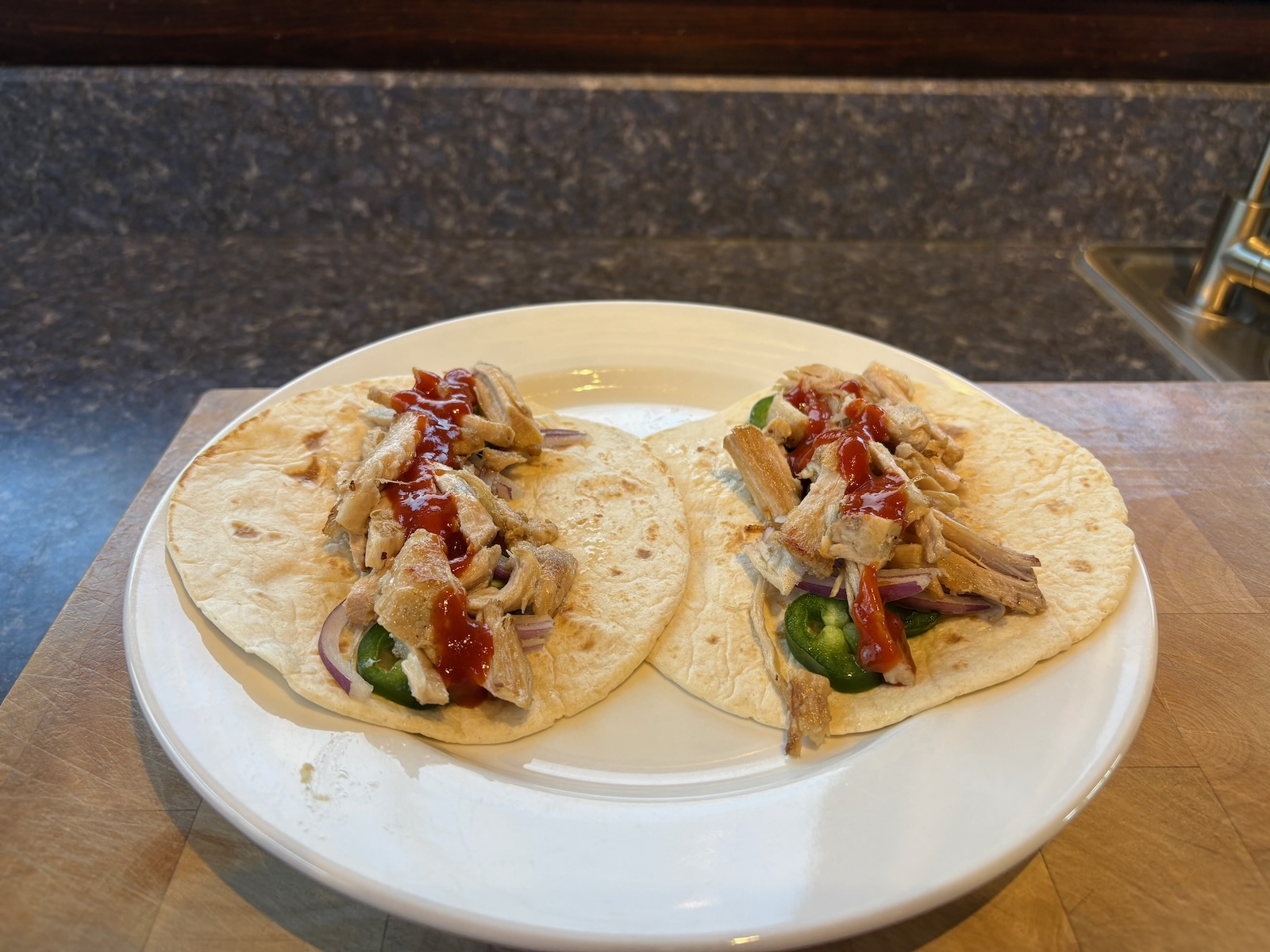 Dinner: Pork carnitas tacos (updated recipe), with 2.8 oz. pork. Sauza hornitos tequila.