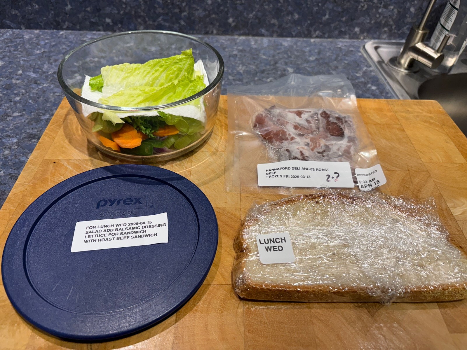Prepped for lunch and dinner.