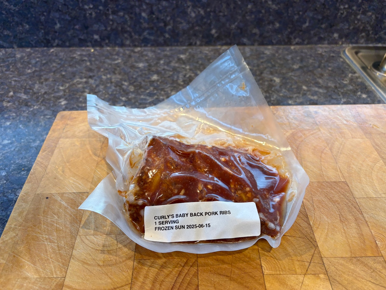 Dinner: Baby back ribs. Half glass of Bota Box cabernet sauvignon.