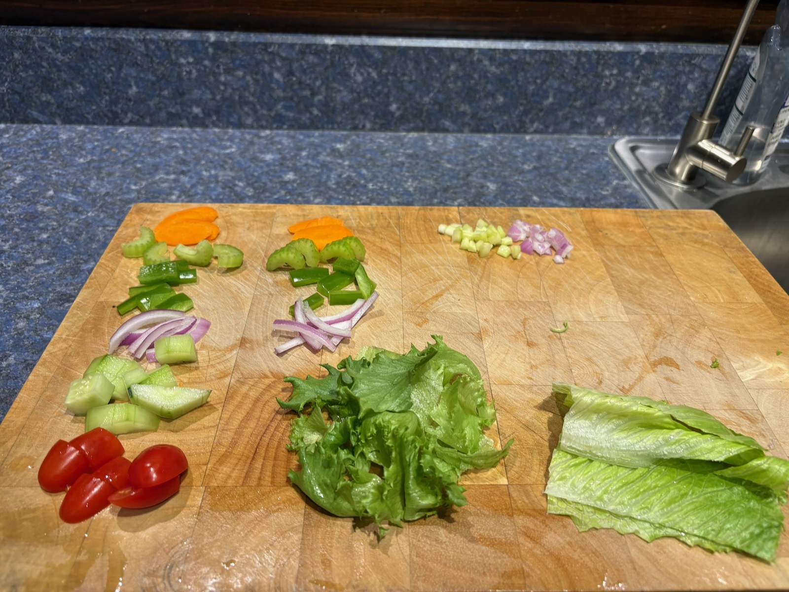 Prepped salad veg for today and tomorrow: Carrot, celery, green pepper, red onion. Also celery and red onion for chicken salad tomorrow.