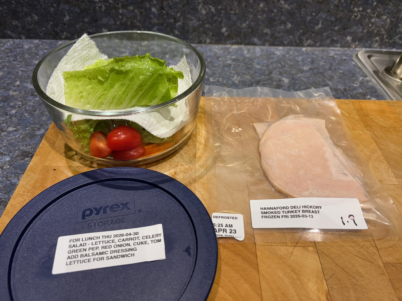 Prepped for lunch and dinner.