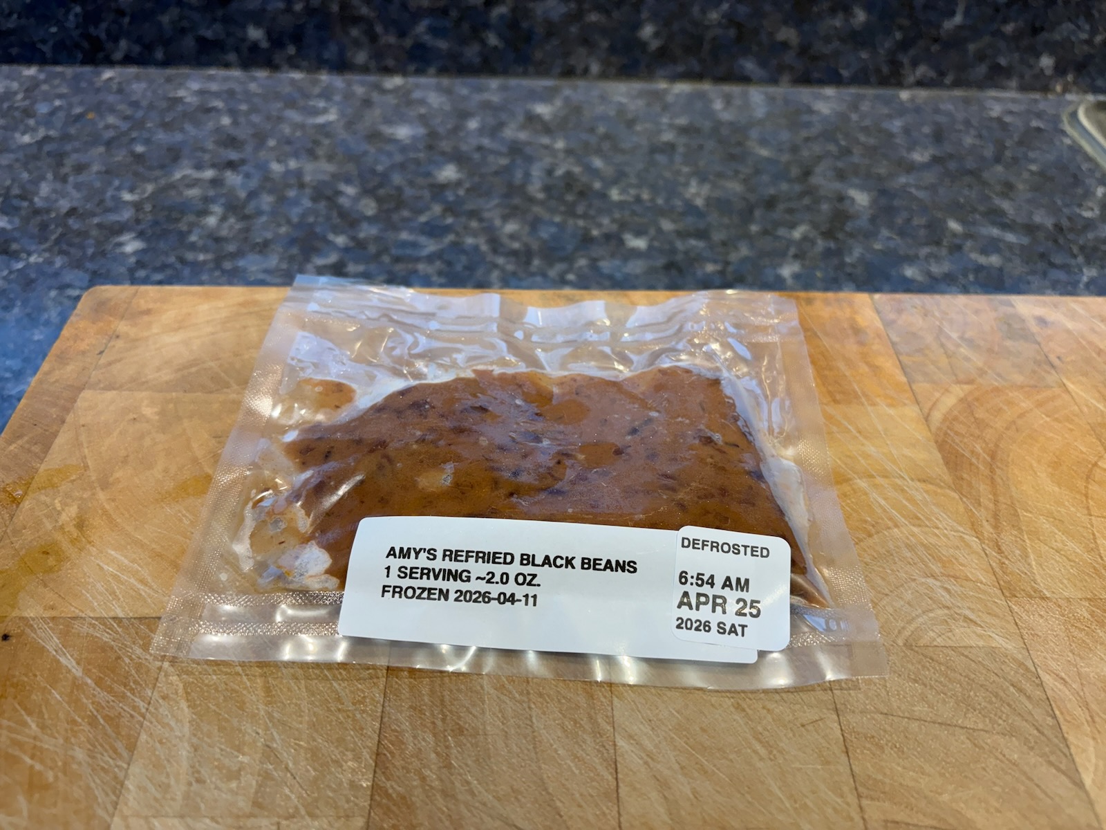 Defrosted refried black beans for breakfast tomorrow.