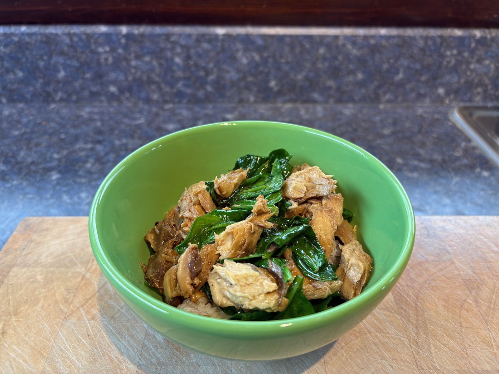 Lunch: Mackerel and spinach rice bowl #2.