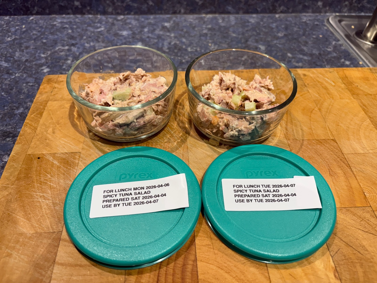 Prepped 2 servings of Spicy tuna salad sandwich.