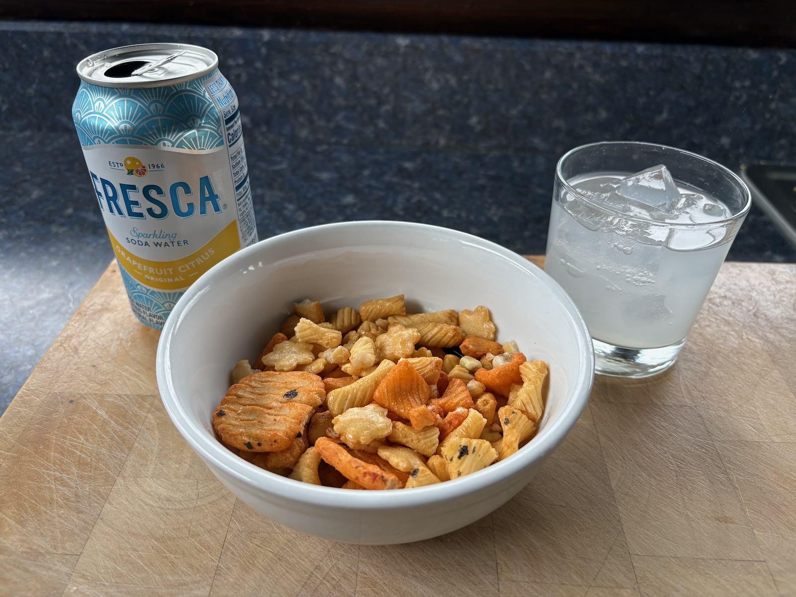 Snack: 2.0 oz. Japanese rice crackers and a Fresca.