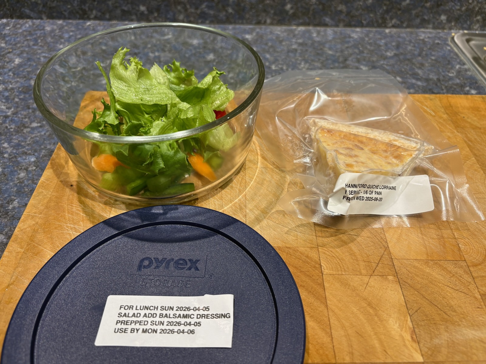 Prepped for lunch and dinner.