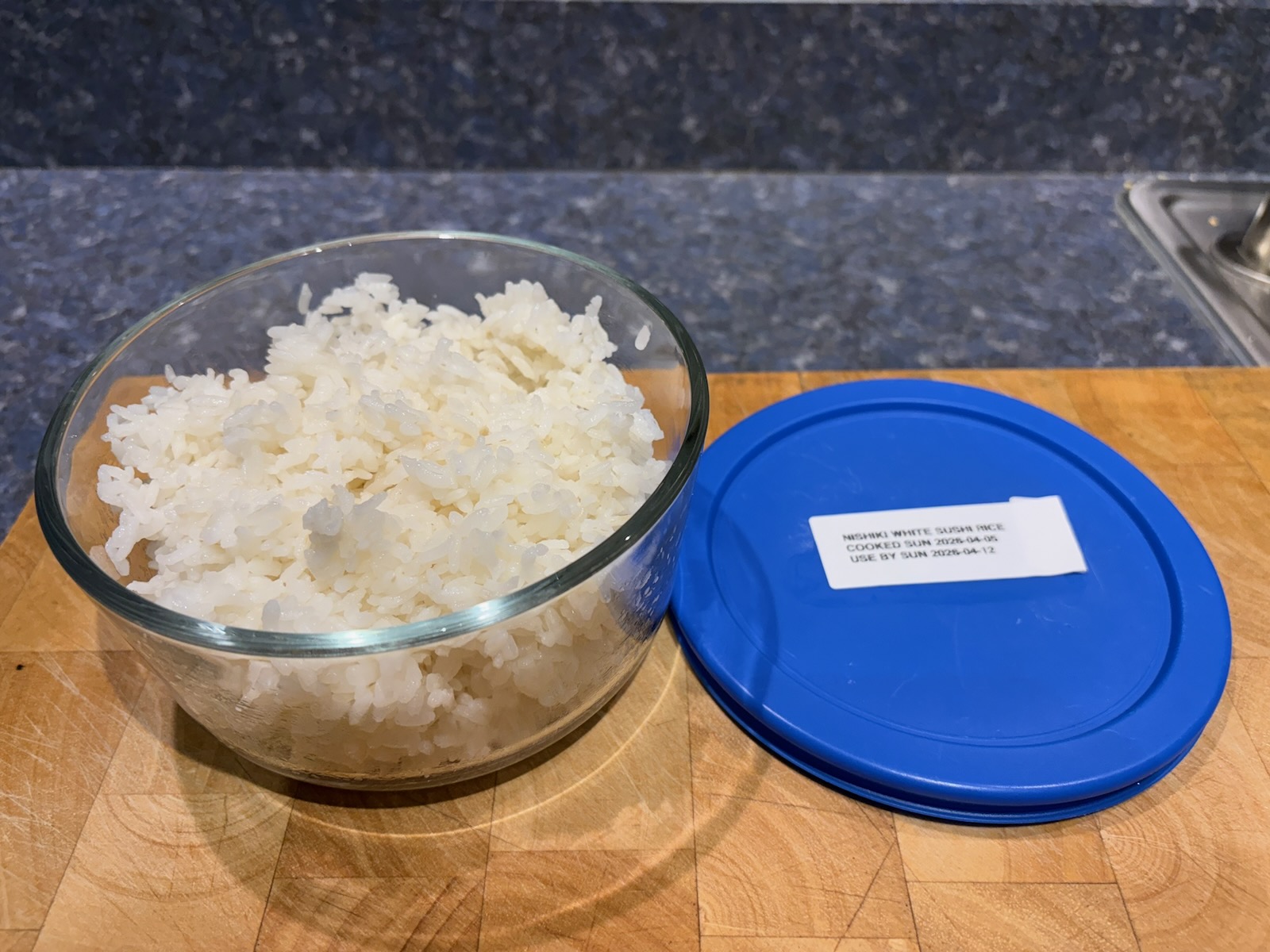 Cooked 1 1/2 cups of Nishiki white sushi rice and refrigerated for the week.