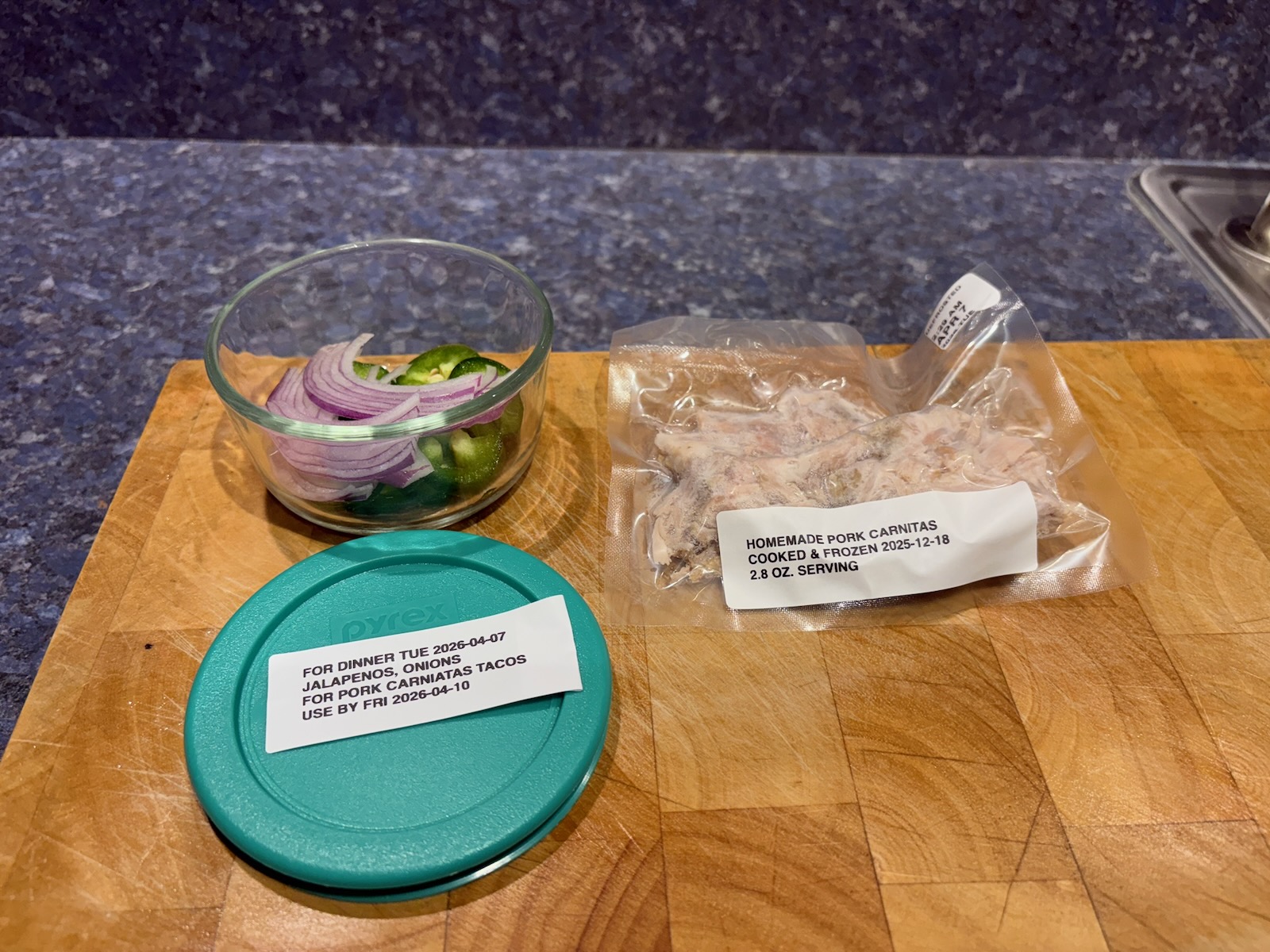 Prepped for lunch and dinner.