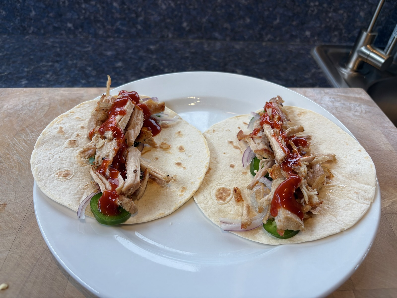 Dinner: Pork carnitas tacos (updated post), with 2.8 oz. pork. Sauza hornitos tequila.