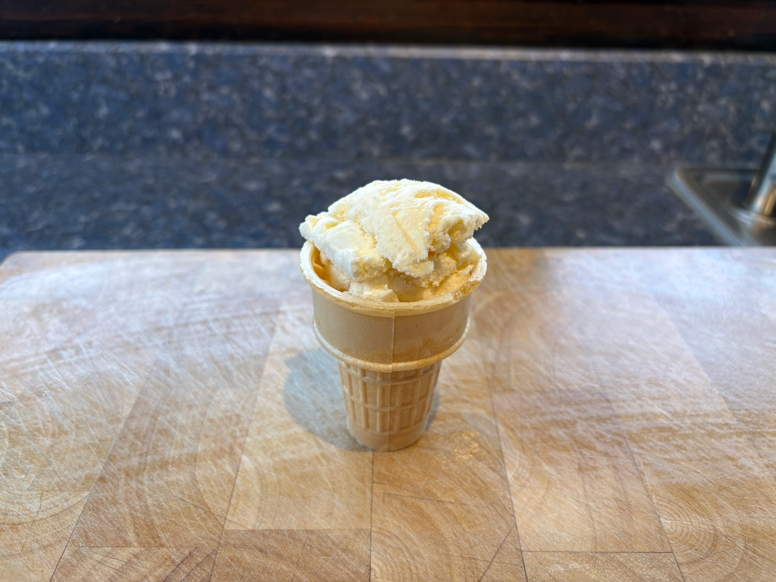 Snack: Small vanilla ice cream cone.